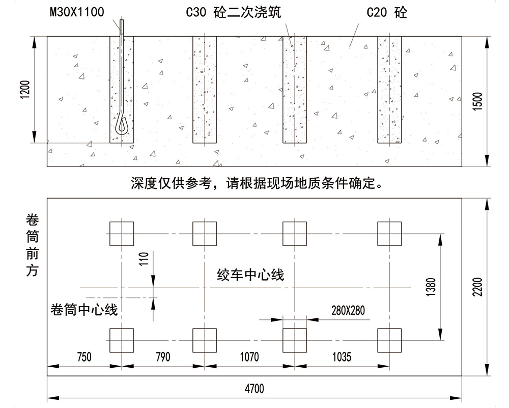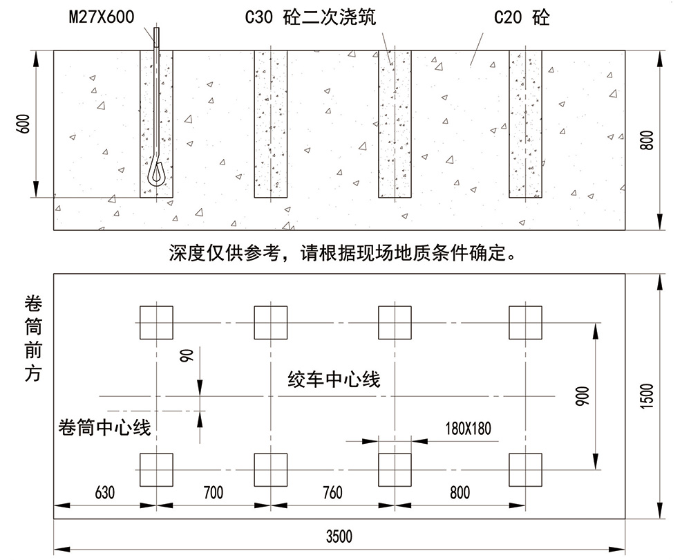 图(9)JSDB-13和JSDB-13A基础图(卷筒在左侧)